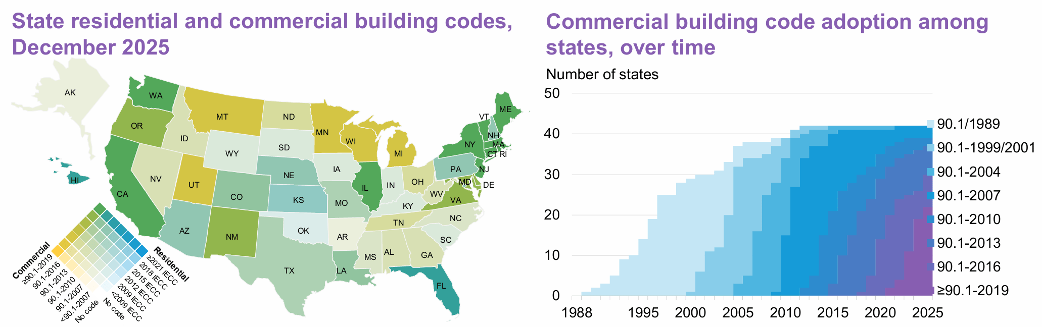 But as you can see by the map and chart above, only a handful of states routinely update their building codes to keep up with the latest standards, which means across the country, even brand new houses may come with higher electric bills built in.
