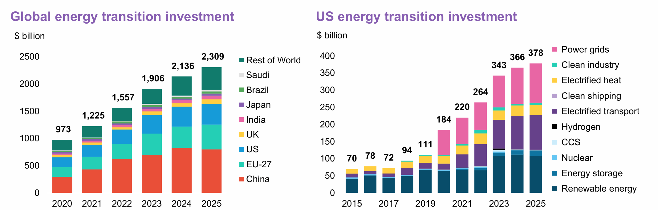 U.S. investment inched up in 2025, from $366 billion in 2024, a sign of the industry’s resilience despite Trump’s clawback of hundreds of billions in clean tech incentives. But what’s super cool is the strength of investments in renewables, electrified transportation and the grid — trends that have been consistent and mostly growing for the past three years (although renewables were down 2.9% as a result of Trump’s funding cancellations).